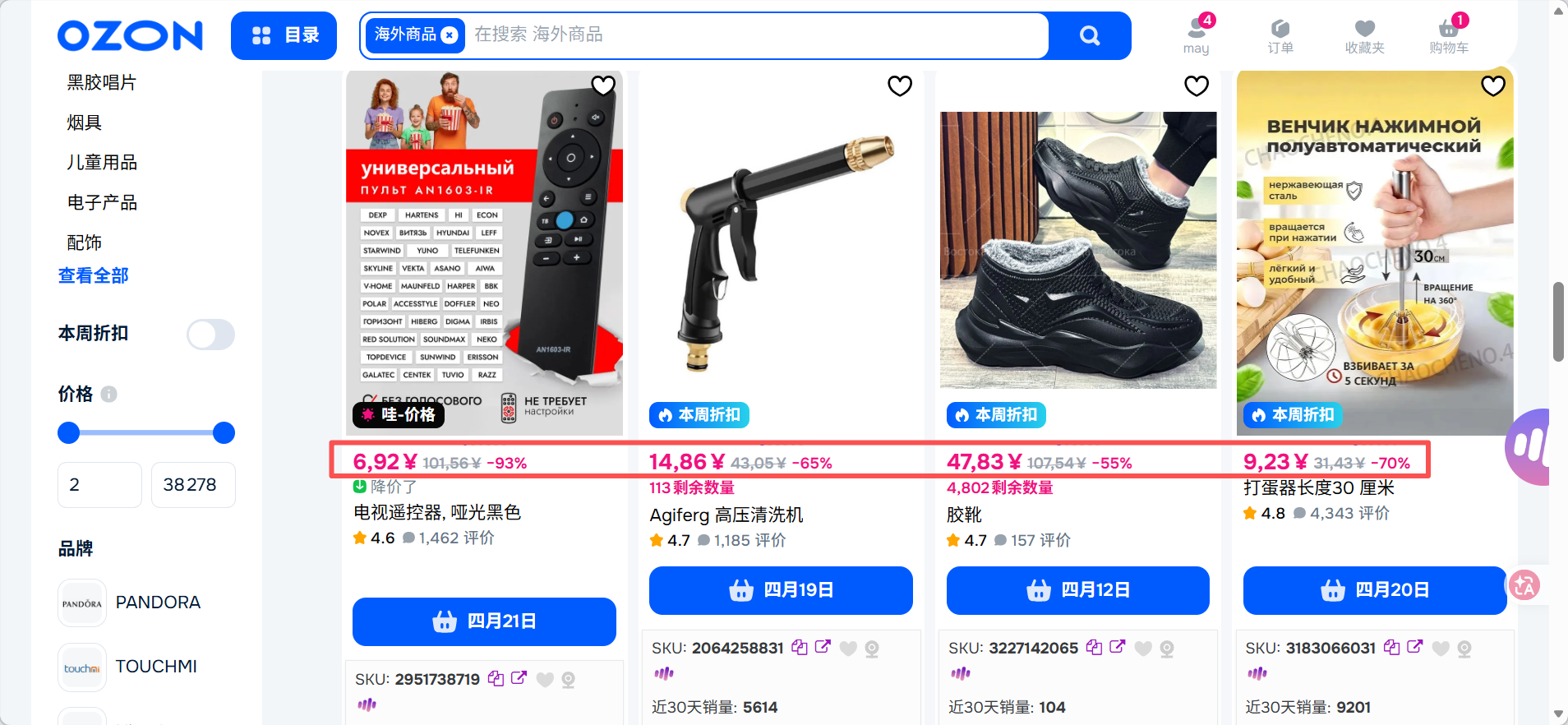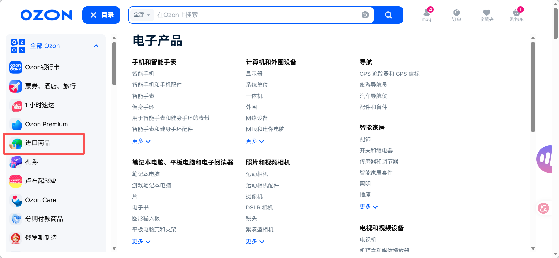- 在Ozon前台筛选“跨境商品”