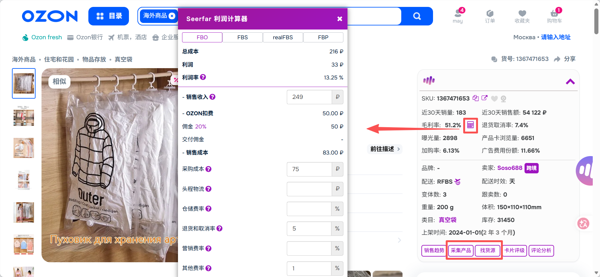 方法2:用插件找同款,直接算利润