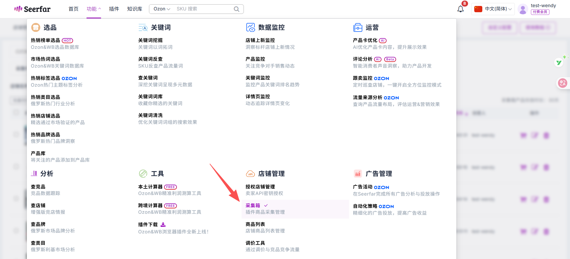 店铺管理功能教程(OZON、WB店铺ERP采集上品)