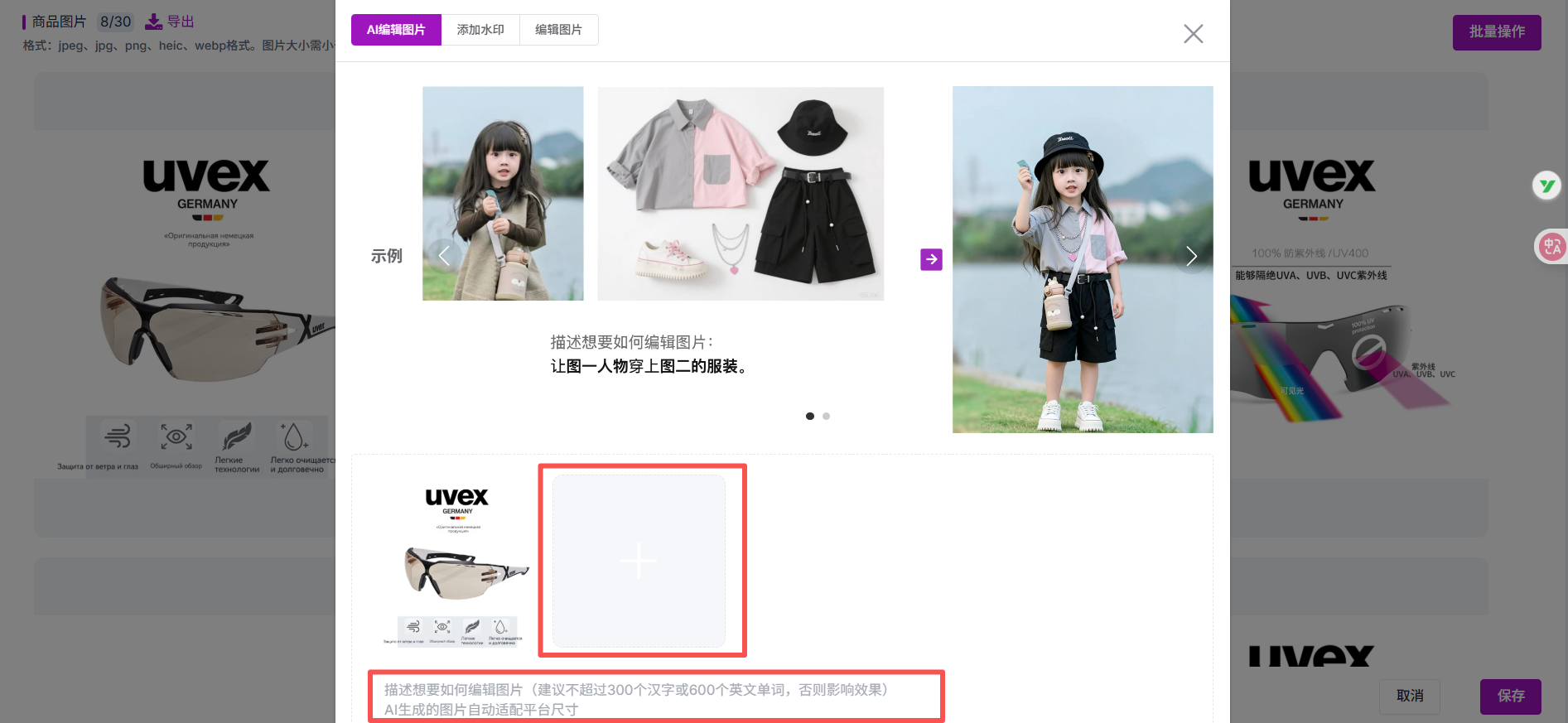 平台对重复内容越来越严格,图片相似度高容易被判定为复制商品卡,从而违反复制禁令被下架。现在,卖家可以利用AI编辑或生成新图: