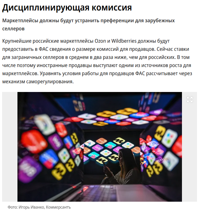 近日,俄罗斯联邦反垄断局(ФАС)针对 Ozon 与 Wildberries 发起反垄断监管,围绕佣金费率差异与价格补贴机制提出整改要求。
