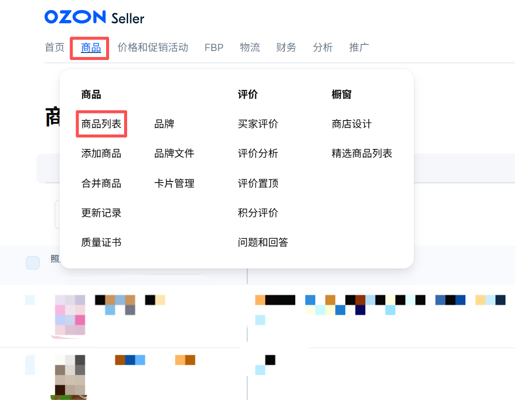 1. 登录 Ozon 后台,进入 “商品”-“商品列表”。