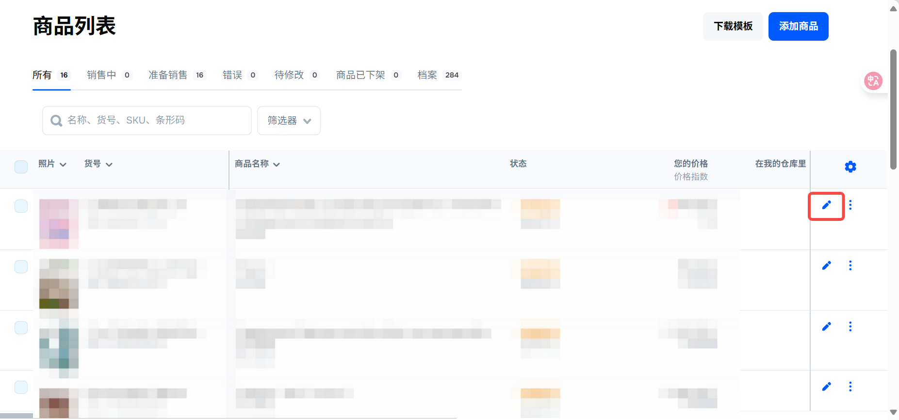 2. 找到要操作的商品,点击右侧的 “编辑商品”。