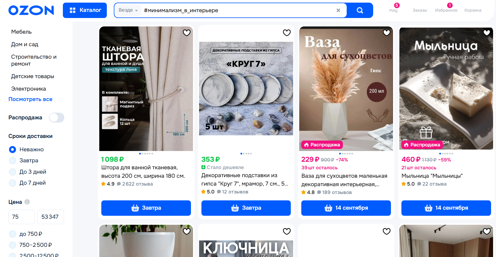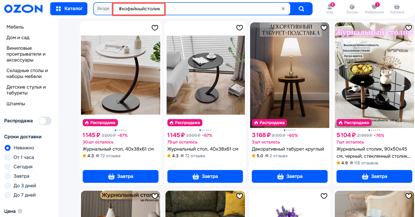 如果你经常刷社交媒体,如Instagram或小红书等,你一定见过各种 #标签# 。Ozon 的逻辑几乎一样:买家点击商品卡片标签或搜索输入标签,系统会展示所有带相同标签的商品,还能按类别进一步筛选。