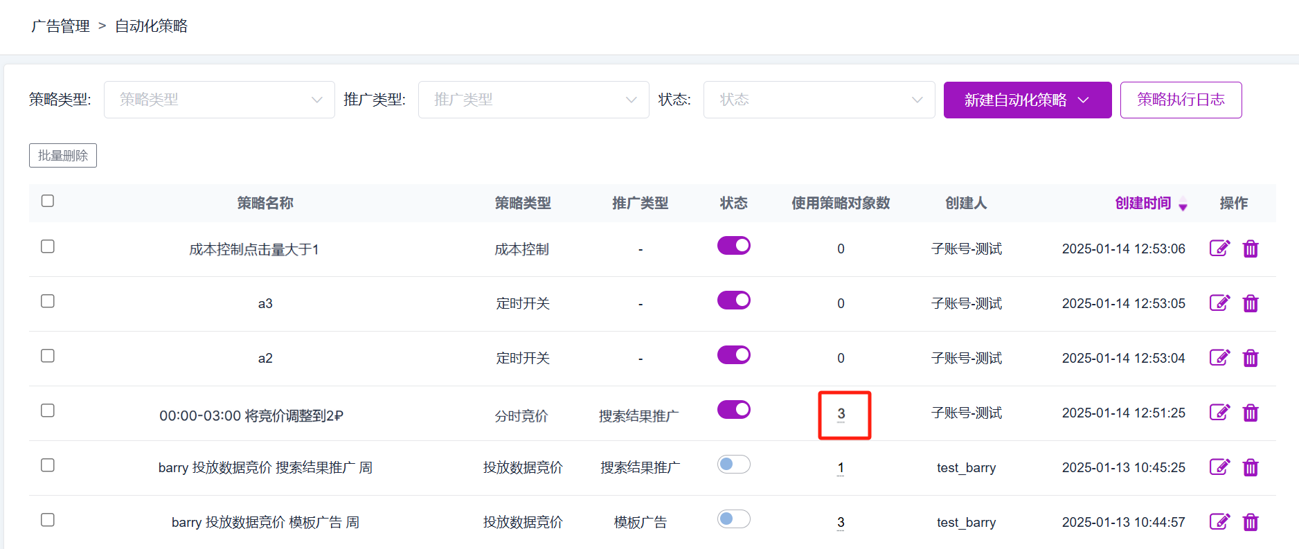 1) 首先,打开 广告管理 – 自动化策略 模块。