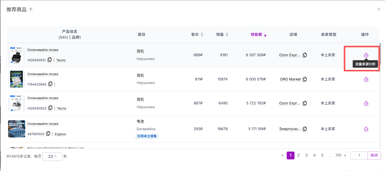 Seerfar推出的“流量来源分析”功能模块,正是为此而生。它通过对OZON产品流量路径的多维度采集与解析,全面揭示商品在不同关键词下的展现机制,结合促销、广告类型和关联商品维度,为卖家提供全息流量洞察视角。以下是该功能模块的详细使用教程,供卖家参考学习: