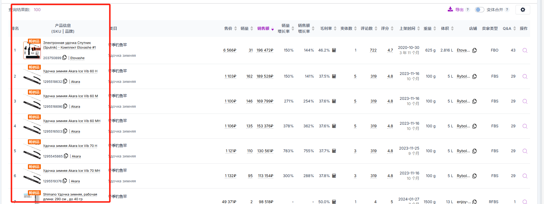 小TIPS:除了可以在OZON、Wildberries买家前台输入这些词,在搜索结果页选品外,我们还可以通过Seerfar的市场热词功能进行选品,如:冬季钓竿 удочка зимняя